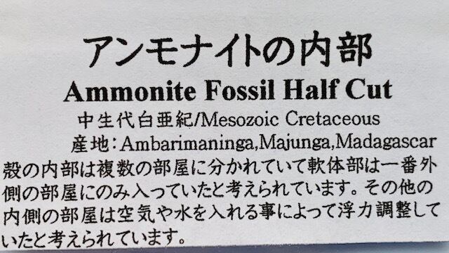 アンモナイトの内部 化石 マダガスカル産 中生白亜紀